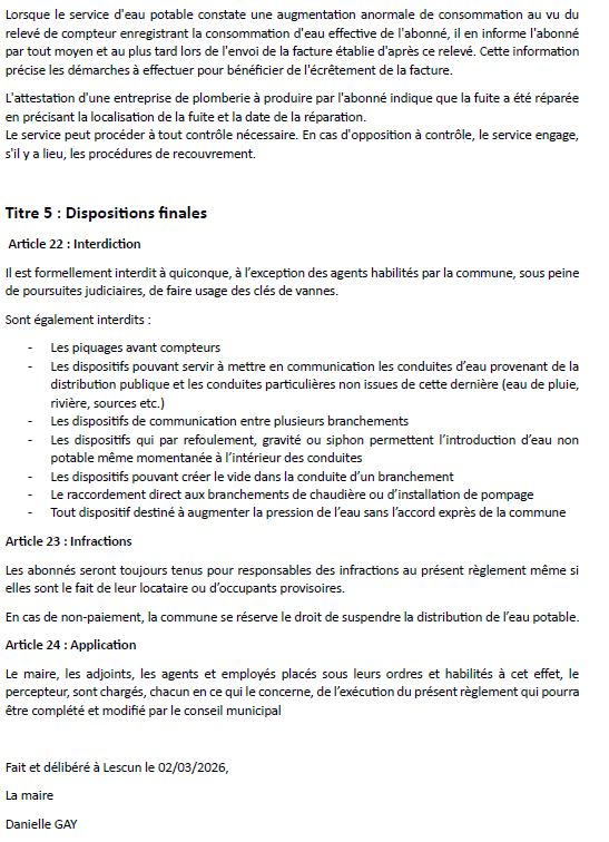 Règlement du service alimentation en eau potable Auteur/autrice de la publication :admin Post published:mars 13, 2026 Post category:Actualités / INFOS PRATIQUES Vous devriez également aimer Le nouveau site est lancé janvier 29, 2023 Moulin cherche mécènes pour coup de jeune août 25, 2025 Ansabe juin 2, 2025