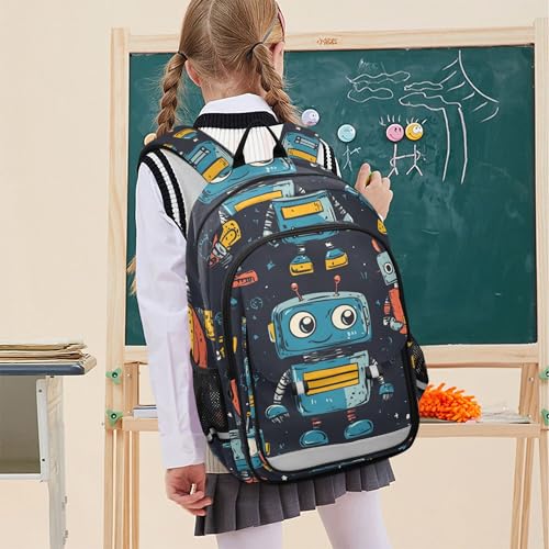 Cartoon Cute Robots Backpack Lightweight Daypack Laptop Backpack School Elementary Travel Computer Bookbag